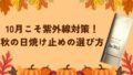 おすすめ商品 10月こそ紫外線対策!秋の日焼け止めの選び方 秋になっても紫外線は油断できません。この記事では、10月の紫外線対策にぴったりの日焼け止めの選び方と、実際に私が愛用している「by365の日焼け止め」をレビュー。乾燥対策や軽いつけ心地など、毎日使えるおすすめポイントも紹介します。 2025.10.03 おすすめ商品