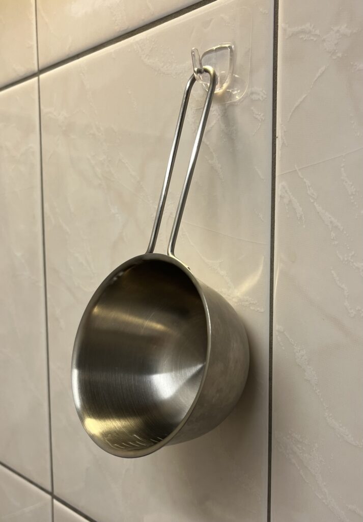 ステンレス軽量カップ|熱湯もOKフックにかけれる
