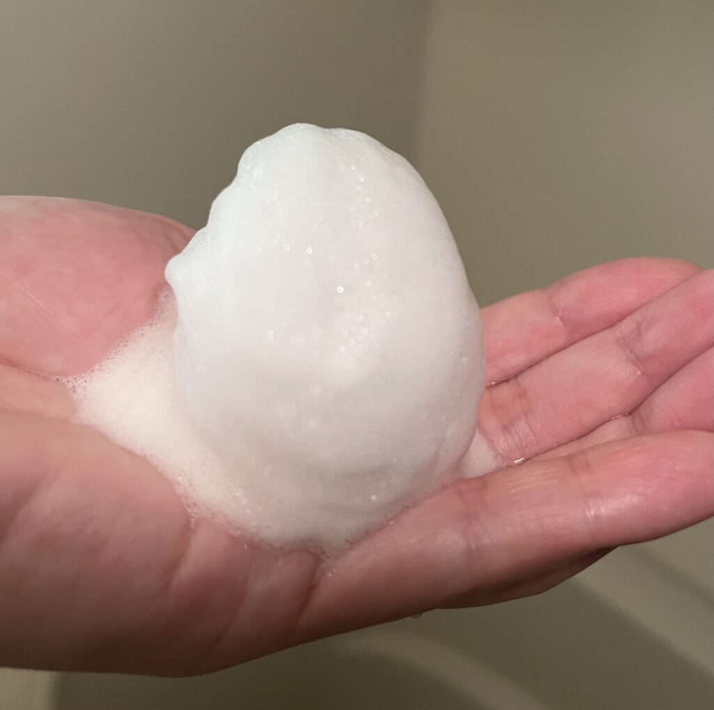 出てきた泡は濃密でふわふわ。肌にのせるとやさしく密着して、摩擦を感じにくいのが良かったです。
