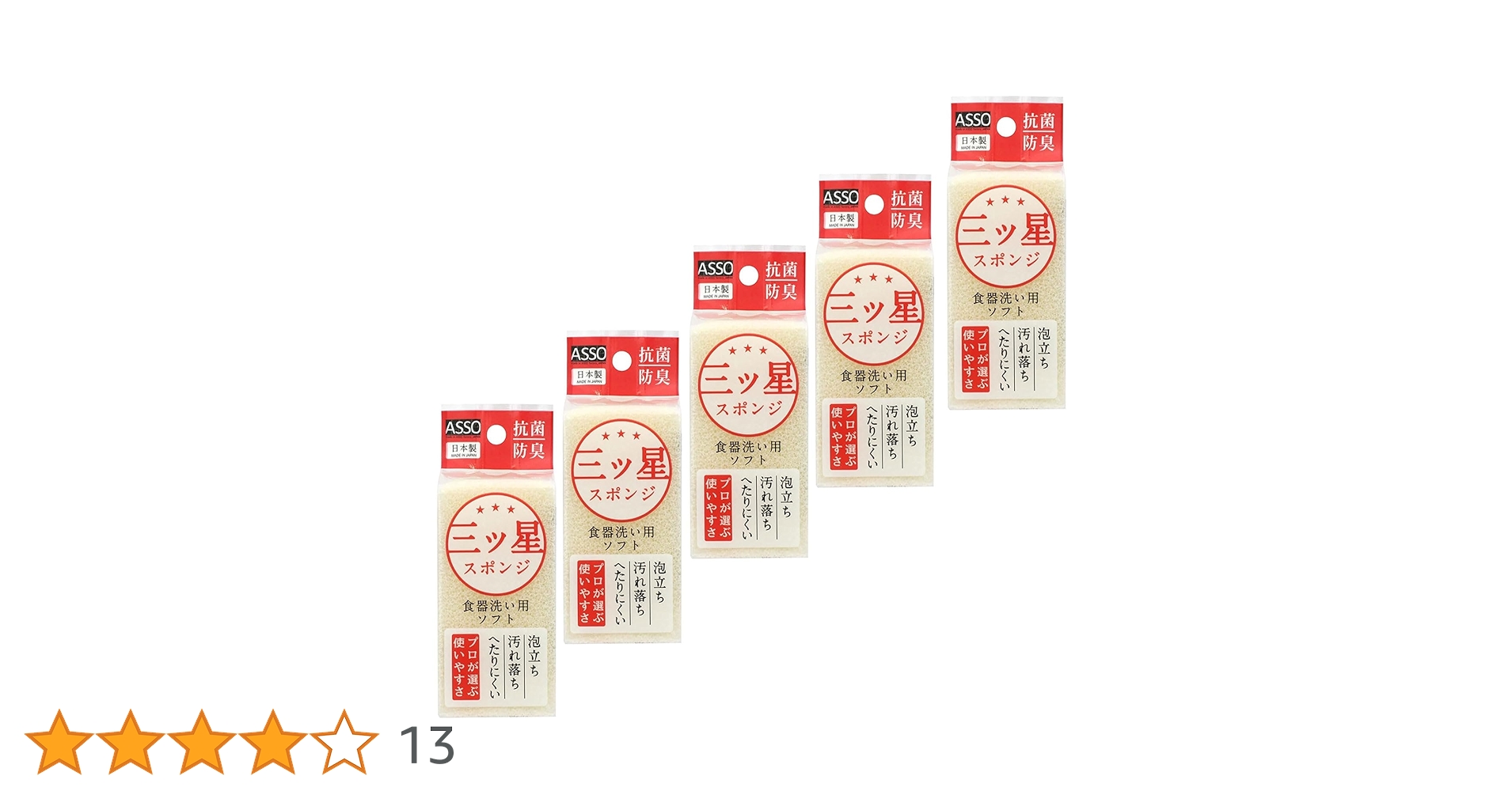 三ッ星スポンジは、値段はやや高めですが「泡立ち・耐久性・清潔さ」のバランスが優秀。