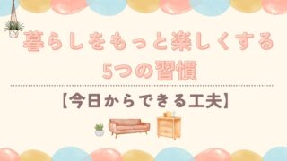 日常 暮らしをもっと楽しくする5つの習慣【今日からできる工夫】 暮らしにちょっとした工夫をプラスするだけで毎日が楽しくなる!今日から実践できる5つの習慣を紹介。心も時間も豊かにするコツです。 2025.08.26 日常
