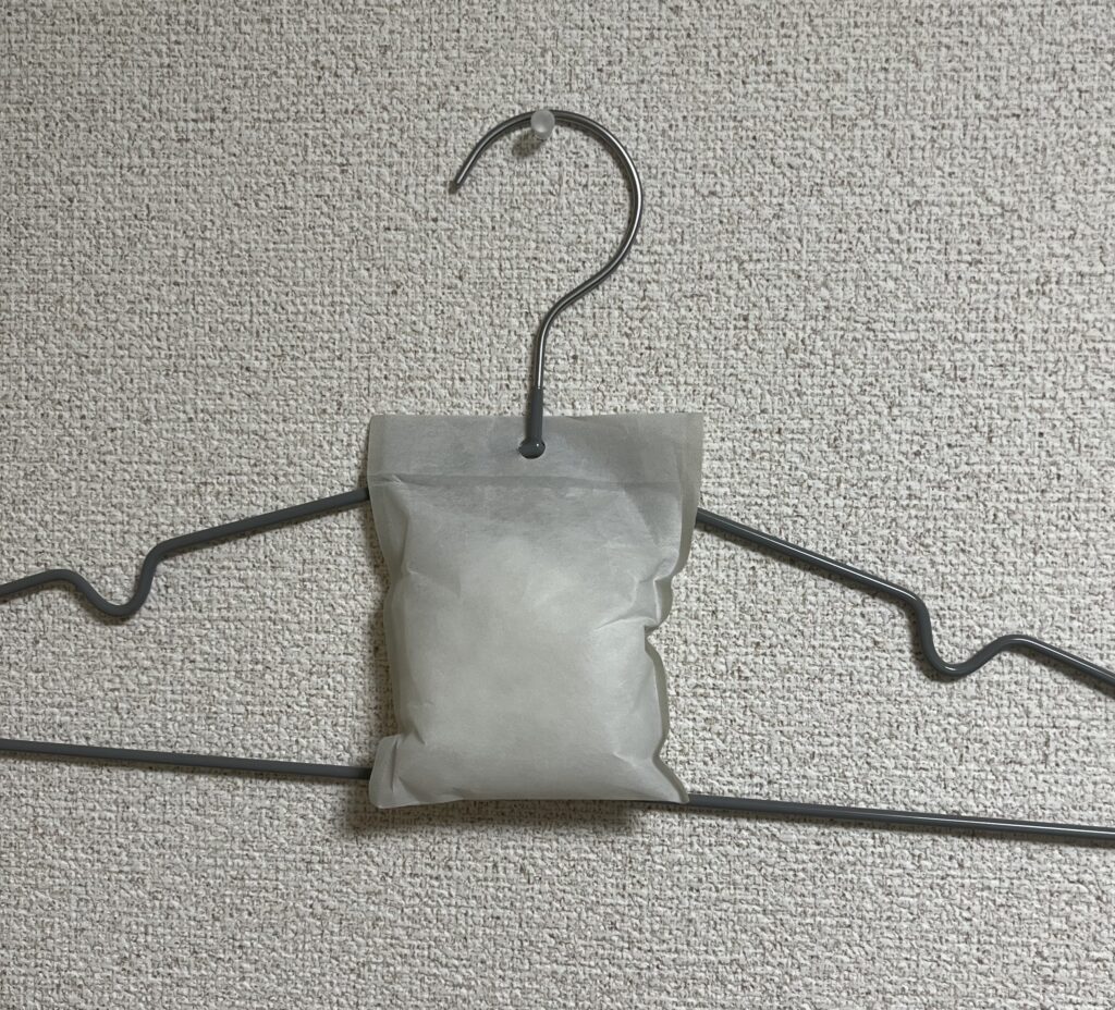 👇️無印良品のコンパクトサイズの除湿剤です。衣装ケースに入れたり、靴やバッグに入れたり、フック穴を使用してハンガーとも組み合わせれるのでおすすめです😊